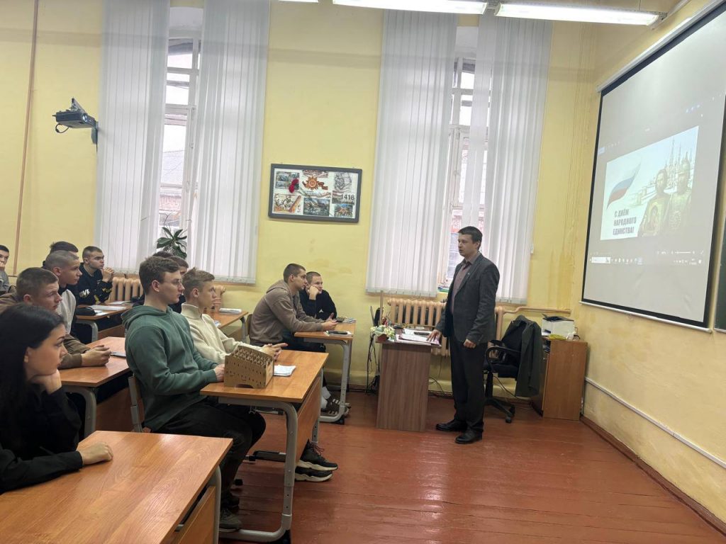 Открытый урок, посвящённый Дню народного единства, в преддверии этого государственного праздника  провели классные руководители групп 25Г и 22Г А.Н. Ветерков и М.С. Ветеркова.