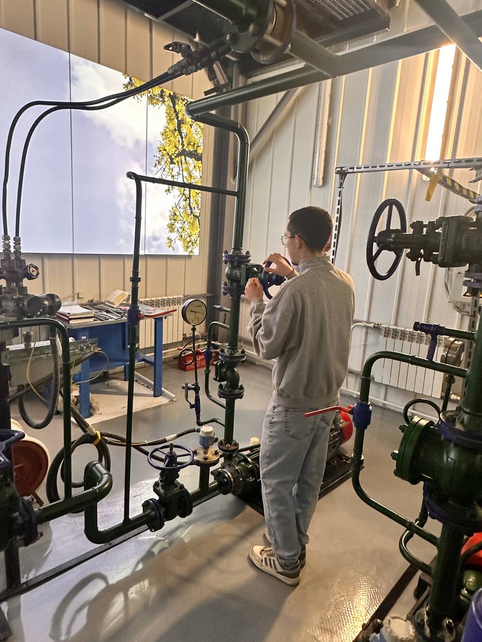 Отдельно подчеркнули важность качественного образования и профессиональных навыков для успешной работы в нефтепереработке, а также провели обзорную экскурсию по территории завода. На площадке учебного центра студенты смогли поучаствовать в технологическом процессе — запуске насосной установки.