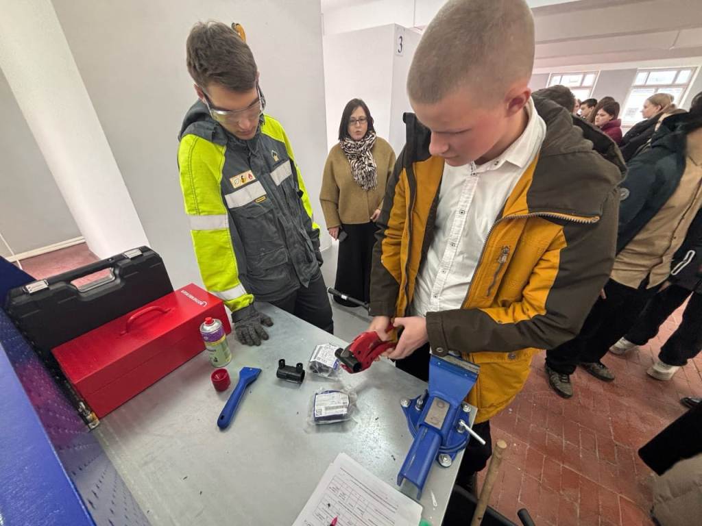 5 ноября ученики Гусевской средней школы познакомились на мастер-классе с монтажом наружного газопровода, который провели мастер производственного обучения А.Н.Ветерков и преподаватель спецдисциплин М.С. Ветеркова.