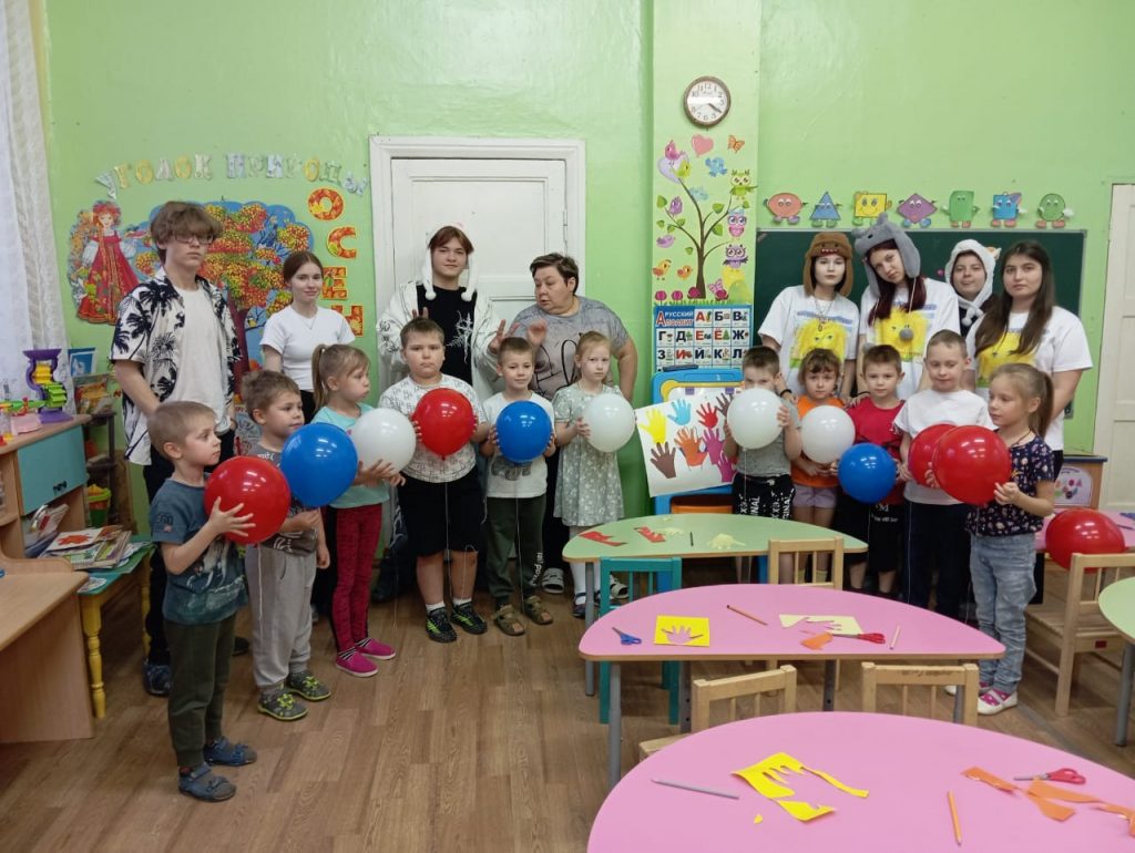 Волонтёры доступно рассказали детям празднике, провели викторину, в которой малыши вполне уверенно и успешно отвечали на вопросы о нашей стране.