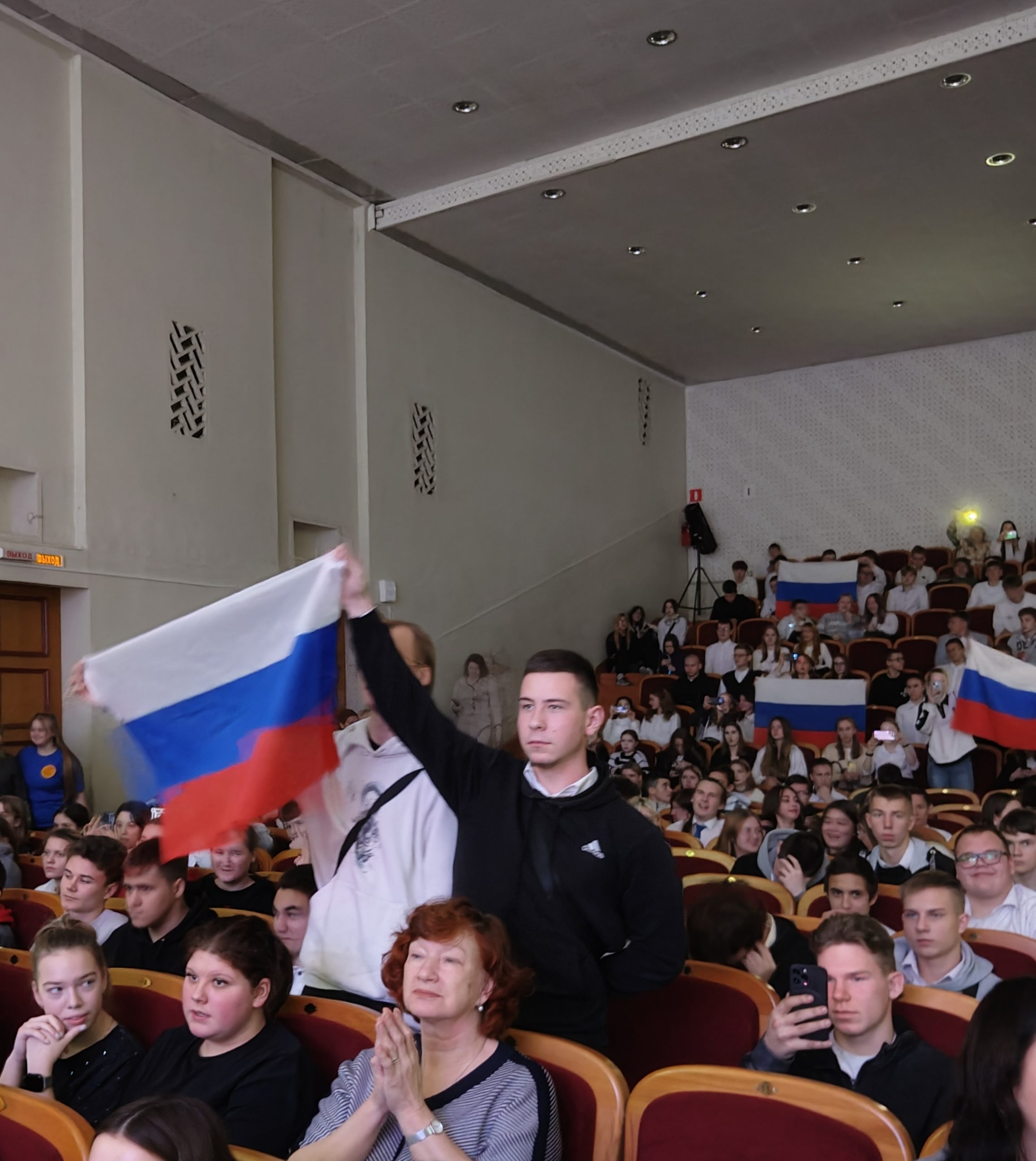 Концерт завершился торжественной композицией с российским триколором под песню «Я русский», что создало в зале атмосферу общего единения и патриотического подъема.