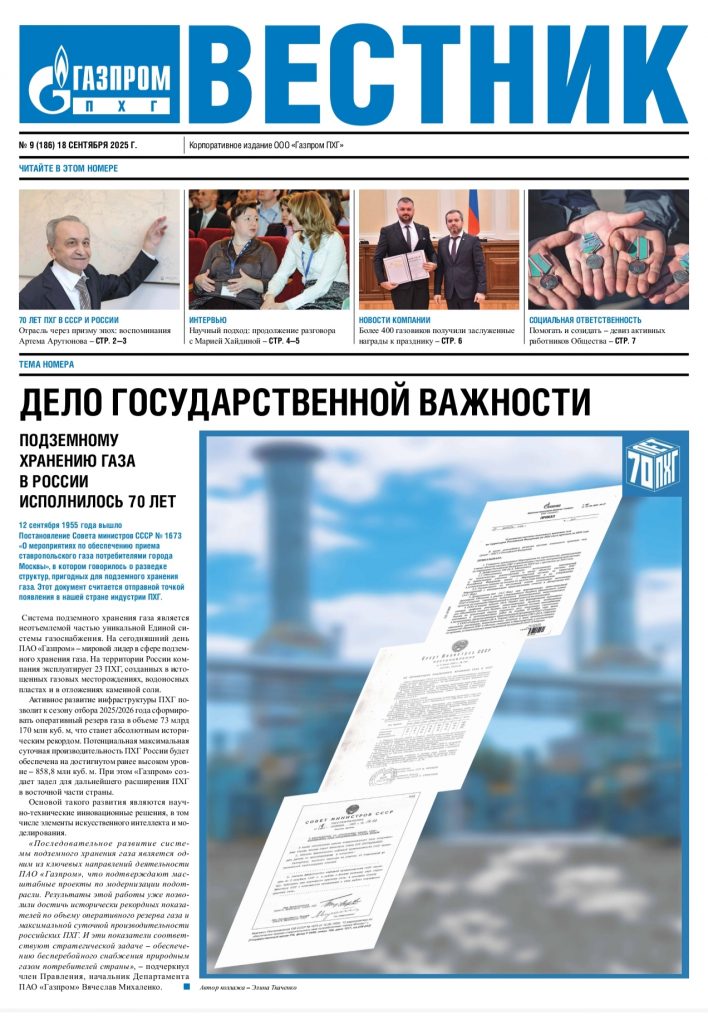 По материалам корпоративного издания «Вестник» ООО «Газпром ПХГ»