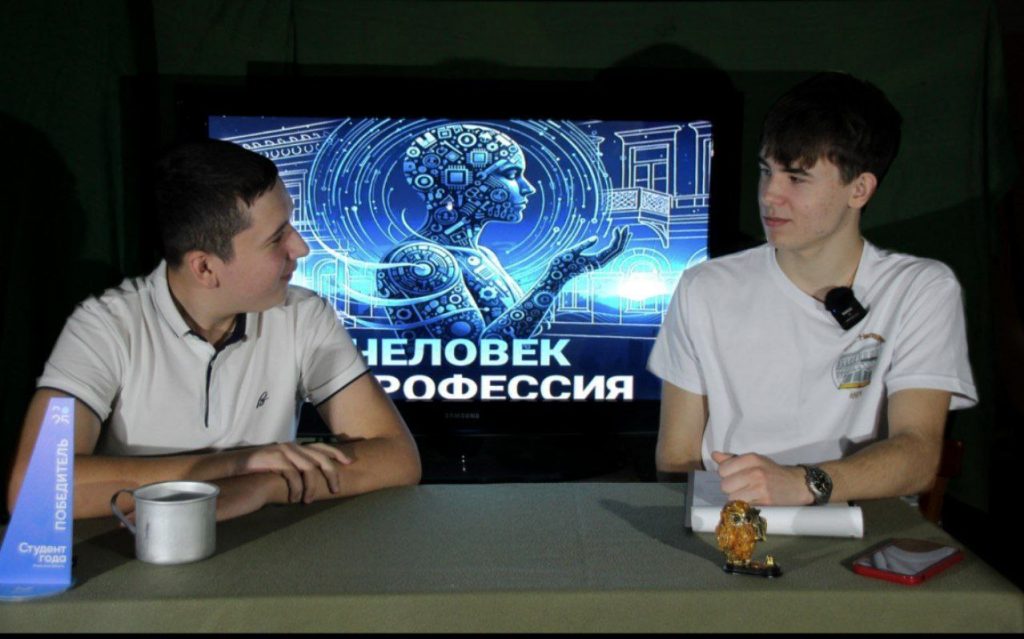В студии подкаста «Человек и профессия» Владимир Григорьев беседует о профессии программиста с председателем студенческого совета колледжа, стипендиатом Правительства РФ Антоном Грушиным.