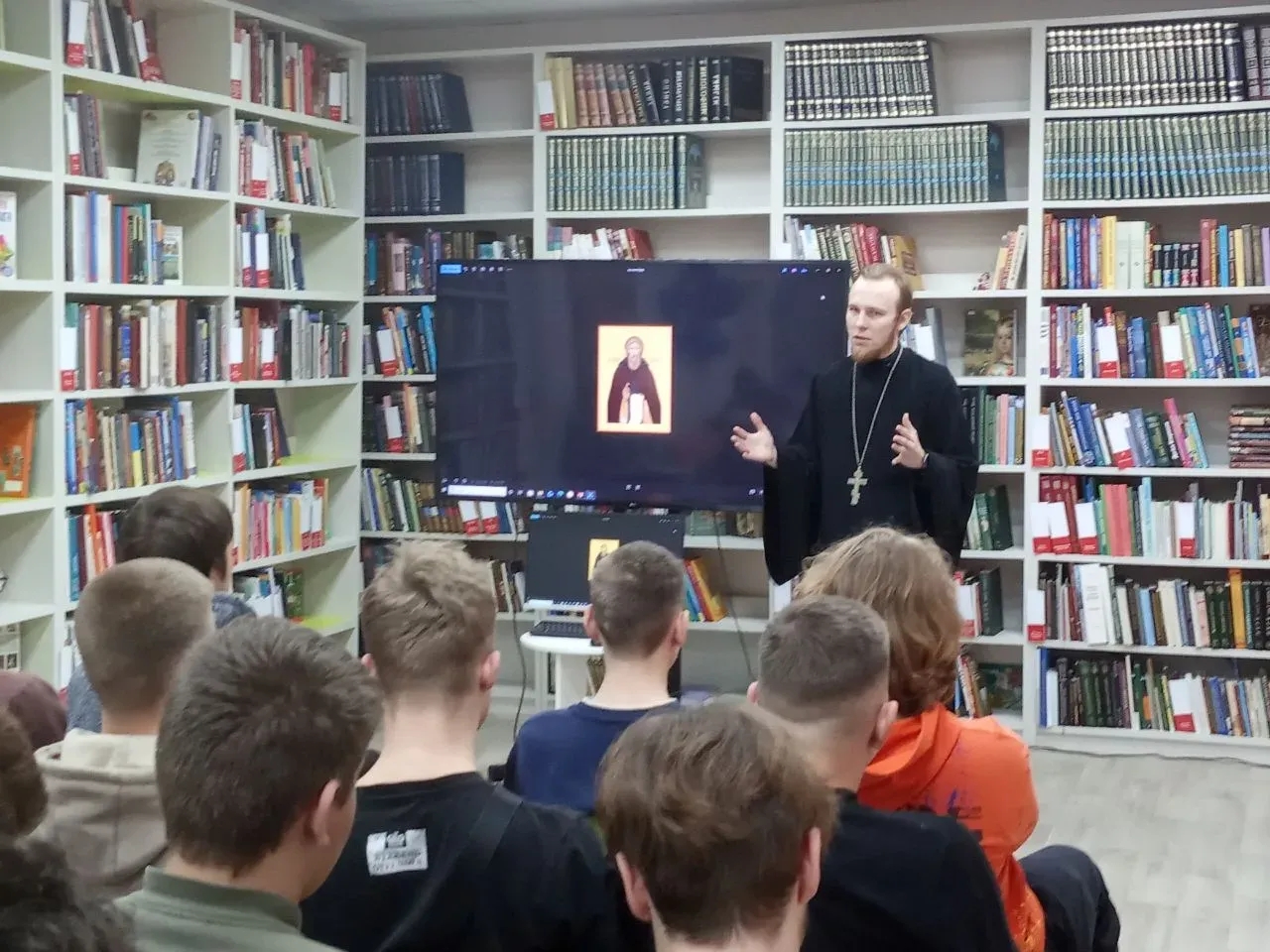 Клирик Вознесенского кафедрального собора г. Касимова, иерей Дмитрий Жучков рассказал о личностях, чтимых в православном христианстве, служащих примерами духовного совершенства, чья жизнь и подвиги вдохновляют людей на духовный рост, милосердие и любовь к ближним и ответил на вопросы аудитории.